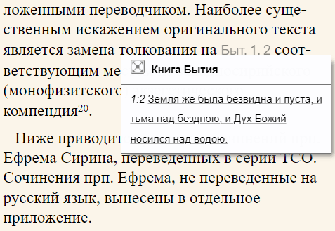"Живые" ссылки на Писание позволяют просмотреть текст указанных стихов не покидая страницы или перейти в раздел Библия портала «Азбука веры» для более подробного изучения в контексте главы.